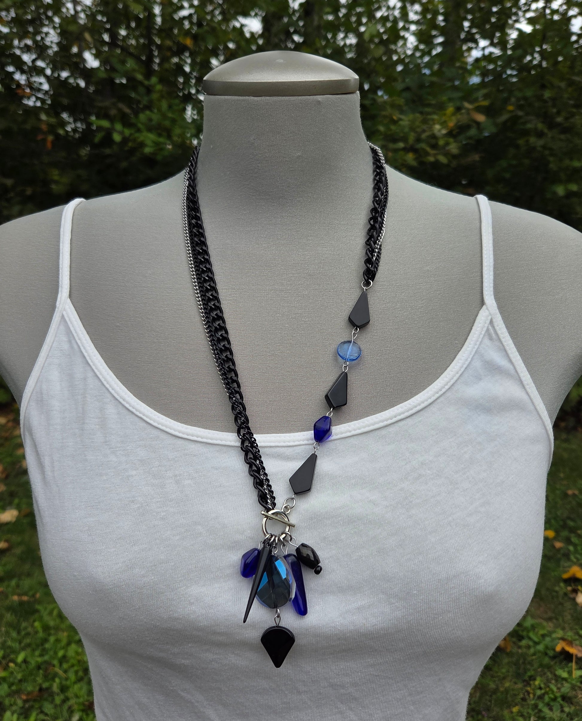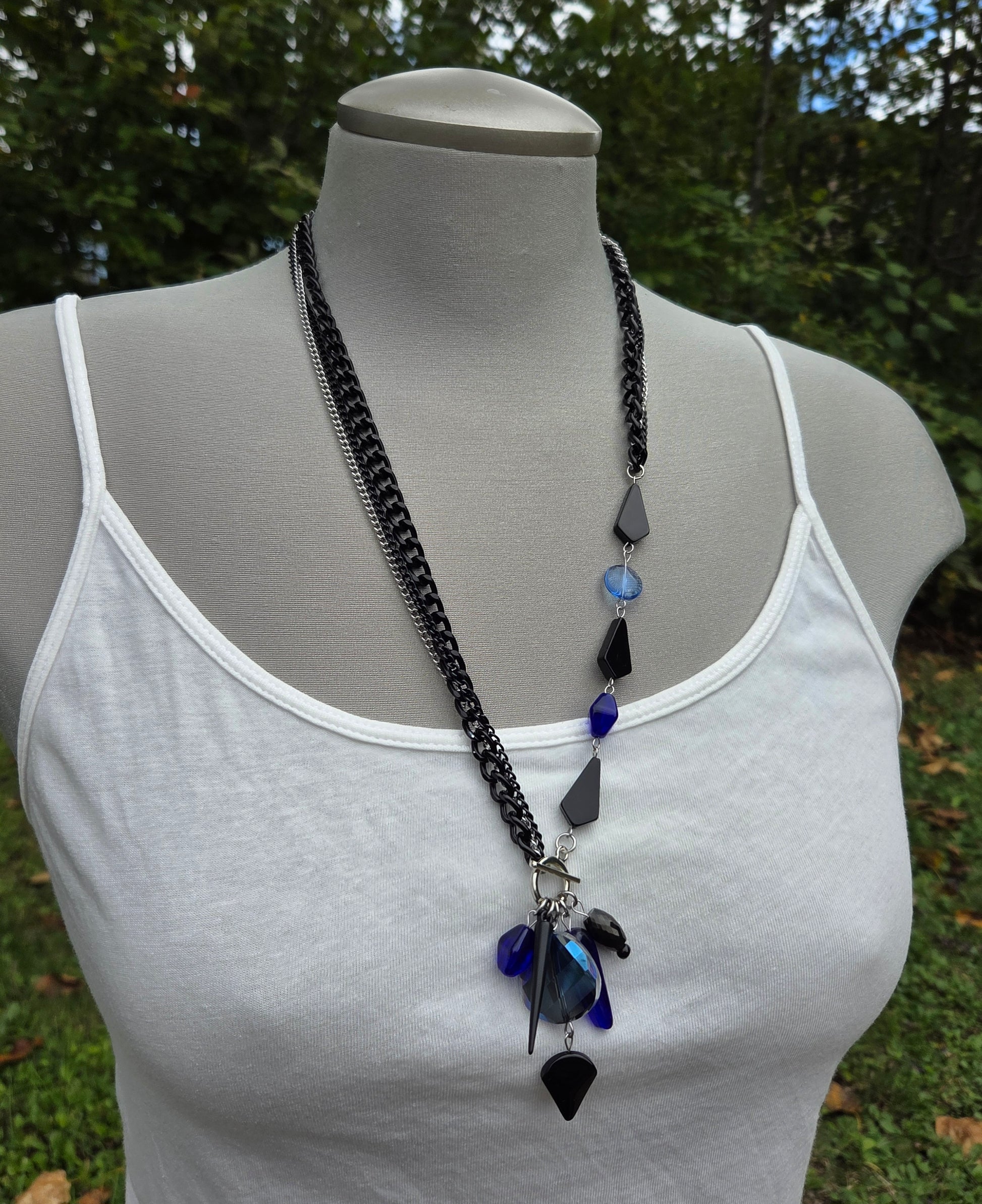 Magnifique collier asymétrique avec chaîne et fermoir qui s'attache en avant en acier inoxydable. Un collier "statement" comme on les aime! Une pièce unique tout comme vous!